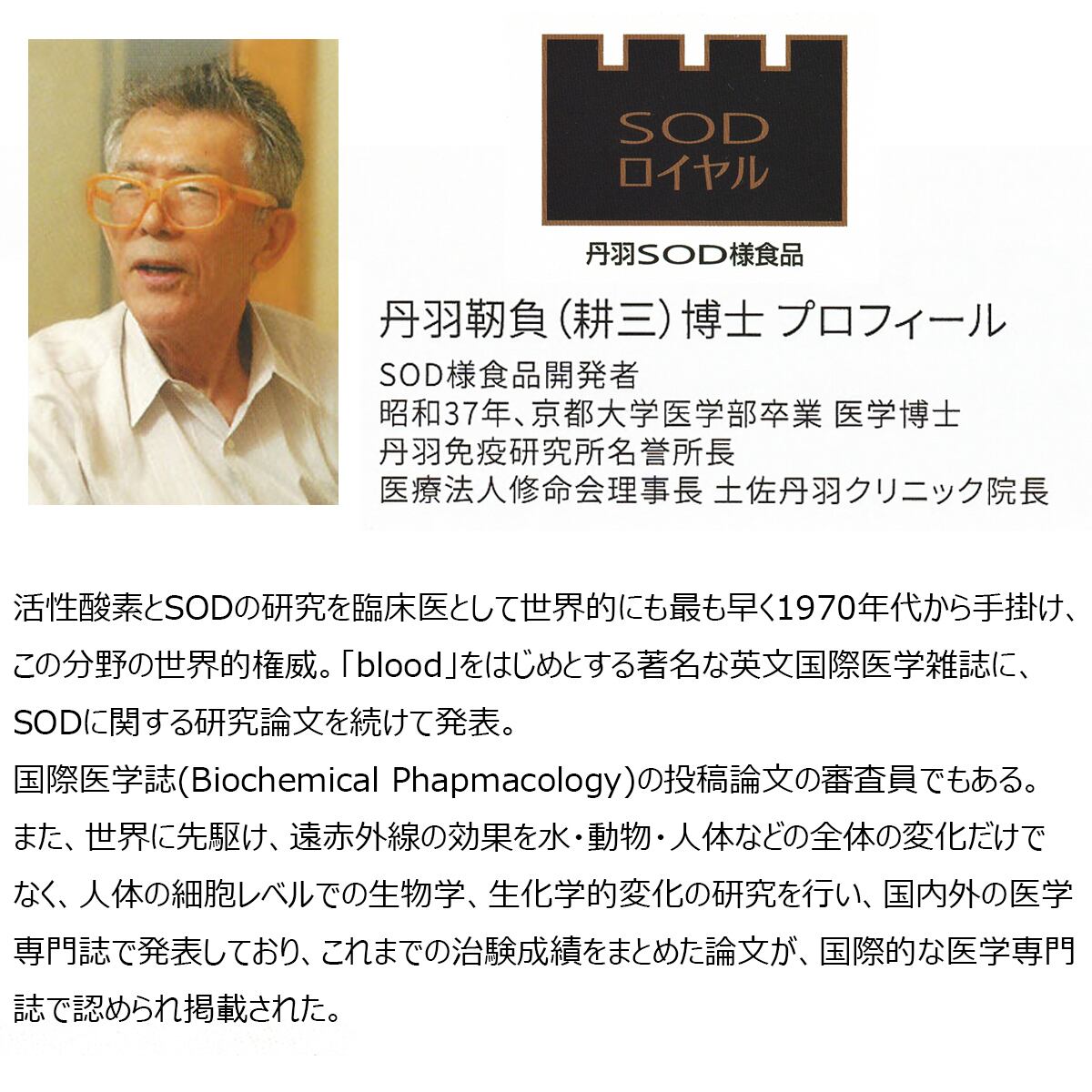・丹羽SODロイヤルの原材料は (ベータカロチン、B2、C、E、フラボノイド、カタラーゼなど) が豊富な天然の食品で構成されています。