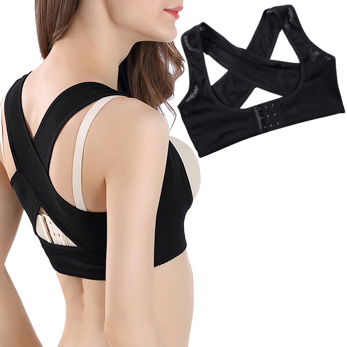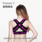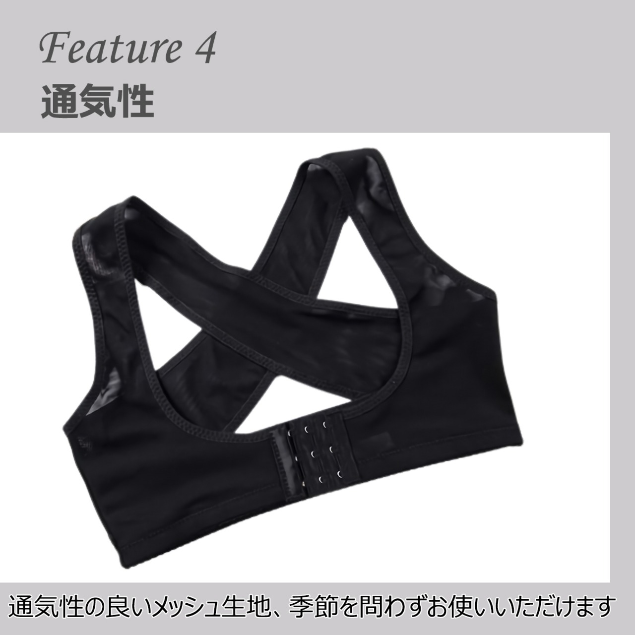 ・【正しい姿勢をサポート】背中のクロスベルトが肩甲骨を引き寄せてしっかり補正。背筋を伸ばし姿勢を矯正します。
