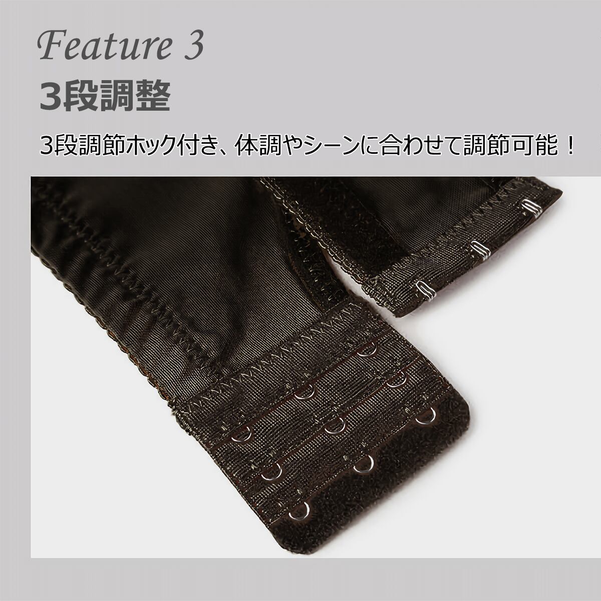 ・【3段階調節】フロントホックは3段階のサイズ調整が可能です。フロントホック式で生地に伸縮性があるので簡単に脱着できます。