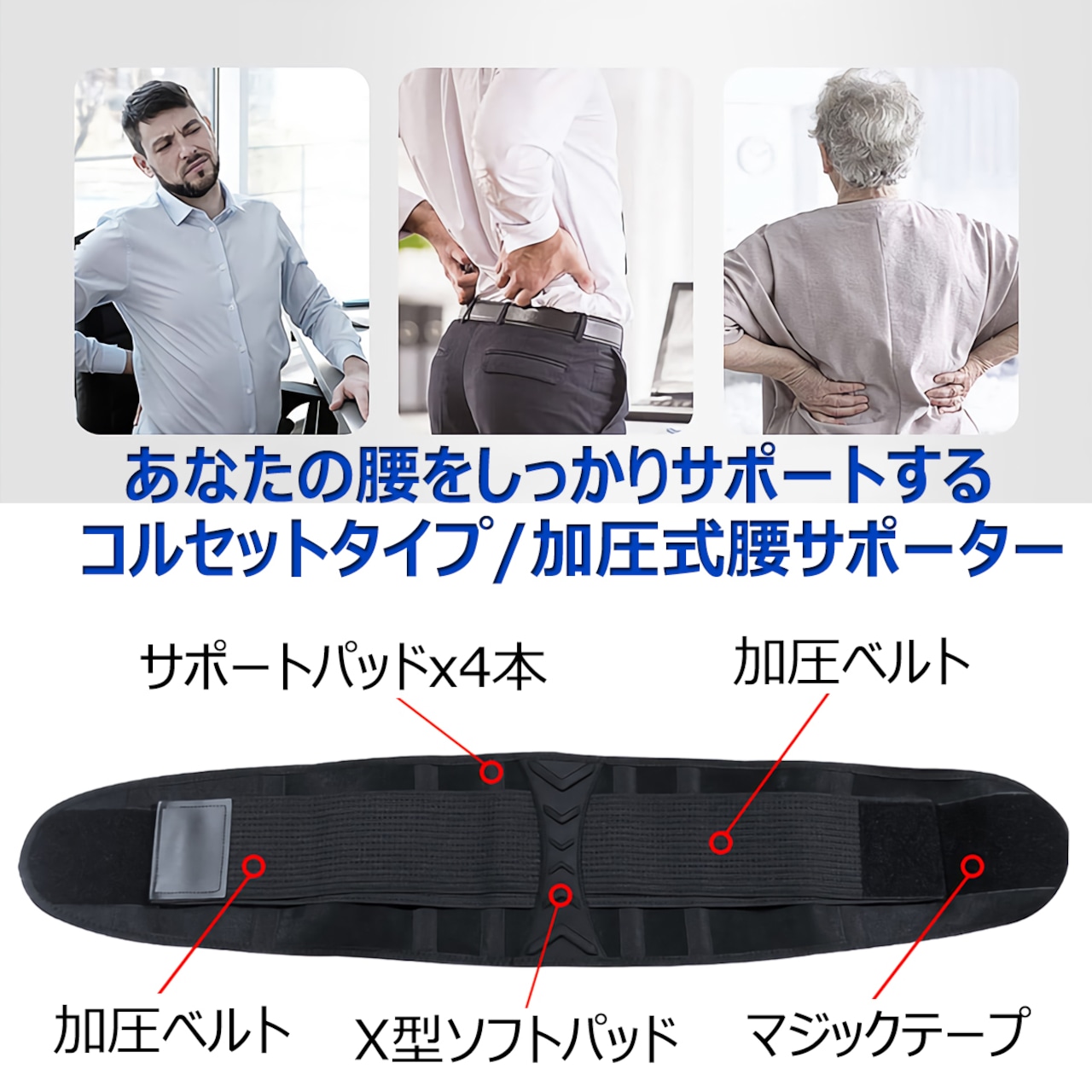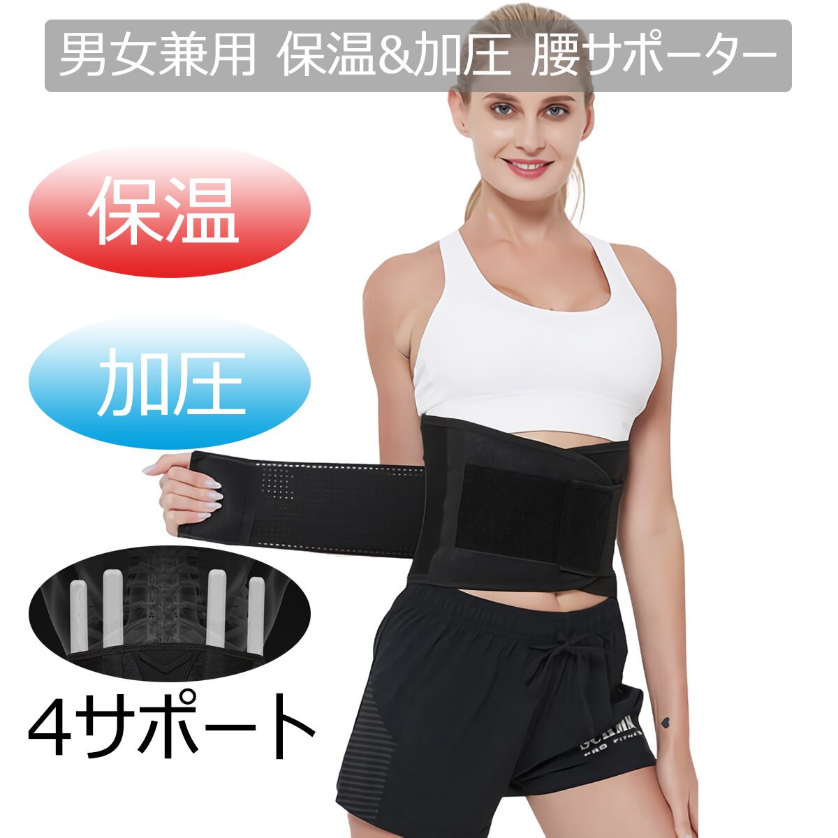 ・【簡単装着】メインのベルト腰に巻き付けてマジックテープで固定し、更に左右の加圧ベルトをマジックテープで固定するだけの簡単装着。