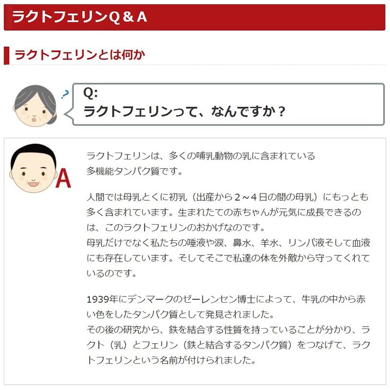 ラクトフェリンは母乳、とくに初乳に多く含まれる多機能タンパクです。 ラクトフェリンには、生まれたばかりの赤ちゃんを守る成分がたっぷり含まれています。 ラクトフェリンは母乳だけでなく、私たちの唾液や涙、鼻水、血液などにも存在しており、身体の健康をサポートしてくれています。 しかし、加齢にしたがって体からラクトフェリンが不足がちになるのでラクトフェリン・サプリで効率よく補ってください。